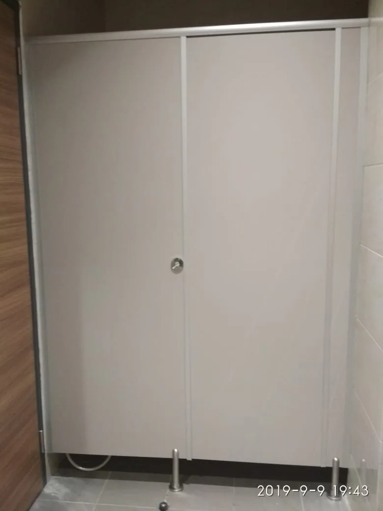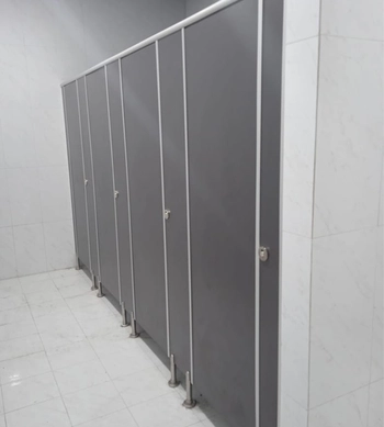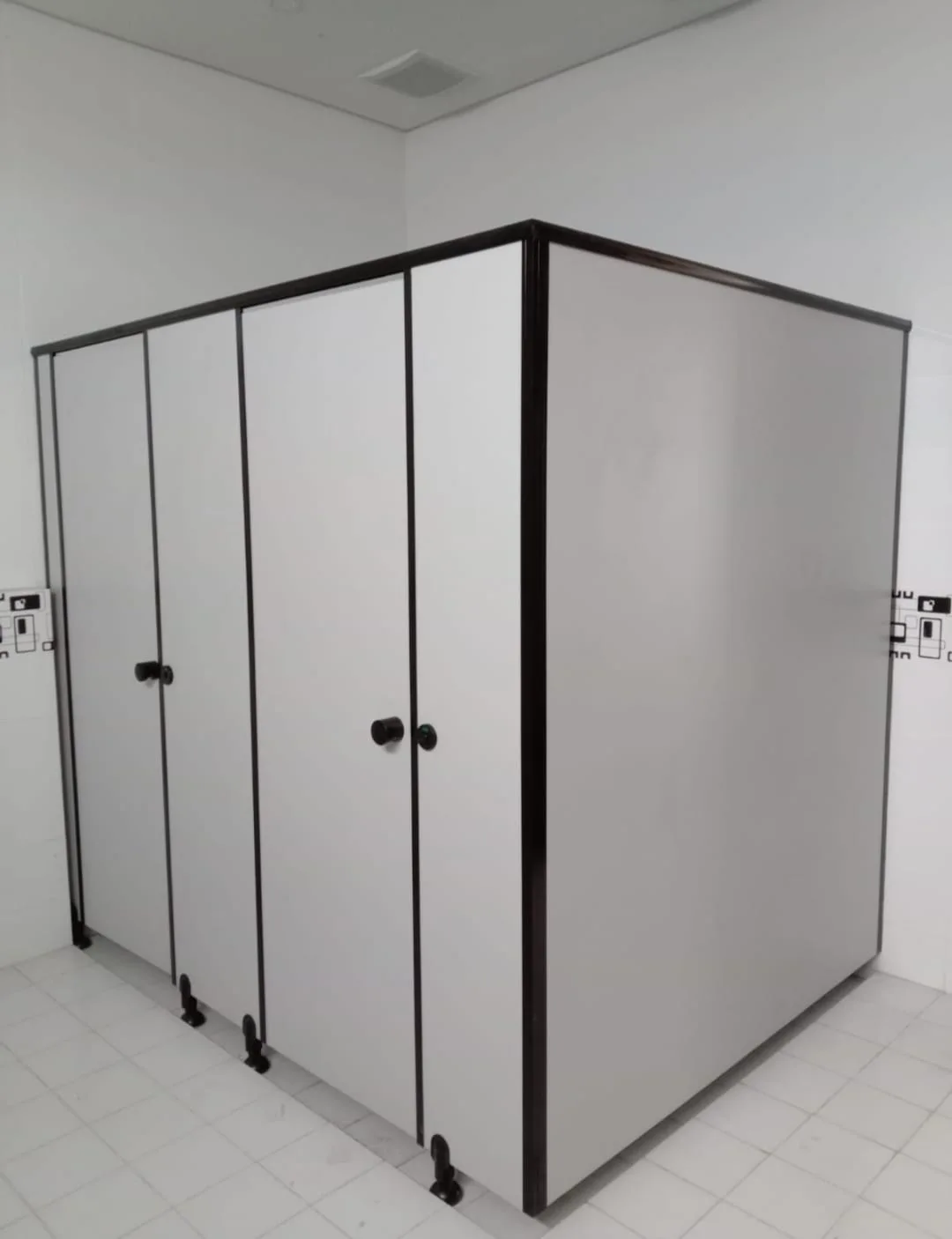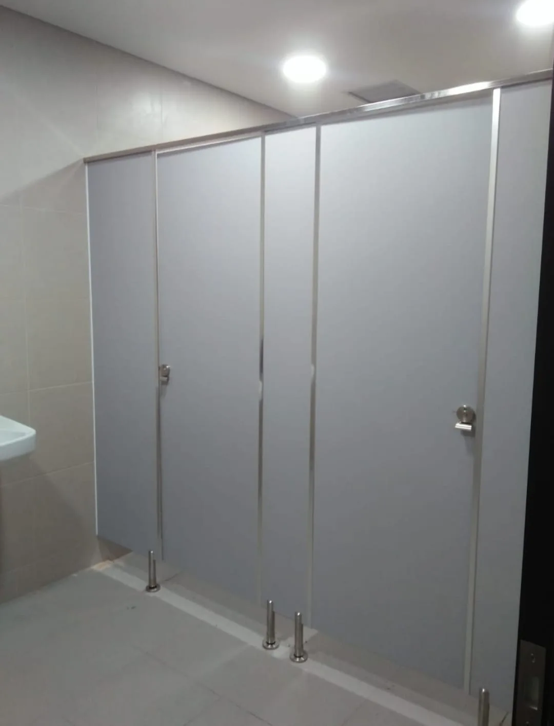 Menggunakan papan Compact Laminate berkualitas tinggi yang tahan air, tahan gores, dan anti jamur — ideal untuk area lembap seperti toilet umum dan shower.